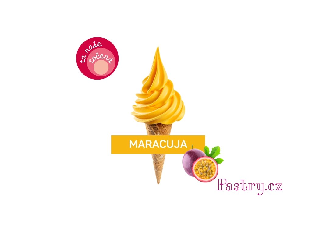 Složení: cukr, dextróza, glukózový sirup, sušená marakujová šťáva 2,5% (marakujová šťáva, maltodextrin), kyselina (kyselina citronová), sušená jablečná šťáva 0,8%, zahušťovadla (guma guar, xanthan, arabská guma), barviva (kurkumin, karoteny), protispékavá látka (oxid křemičitý), marakujové aroma.