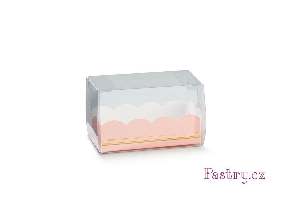 KRABIČKA NA MAKRONKY - PLASTOVÁ NA 7ks MAKRONEK (RŮŽOVÝ VKLAD) 16x5x5cm