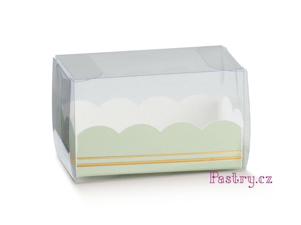 KRABIČKA NA MAKRONKY - PLASTOVÁ NA 7ks MAKRONEK (ZELENÝ VKLAD) 19x5x5cm